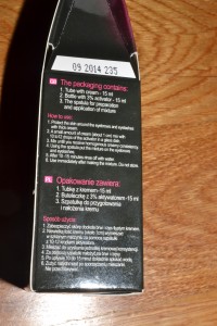 Zestaw załaczony w opakowaniu zawiera tubkę z kremem, aktywator i wyjątkowo precyzyjną szczoteczkę – aplikator. Wystarczy do naczynia wycisnąć niewielką ilość kremu, dodać ok 10 kropel aktywatora i wymieszać. Powstałą miksturę nanosimy grzebyczkiem na rzęsy. Należy jedynie pamiętać, by przed pierwszym zabiegiem zrobić test na skórze za uchem i sprawdzić, czy preparat nas nie uczula. Dodatkwo powinno się posmarować okolicę oczu i brwi tłustym kremem, by w przypadku dotknięcia powiek henną, szybko ją usunąć i nie pozostawić plam na skórze. Po 10-15 min oczy lub/i brwi należy obficie przemyć wodą. Gotowe!