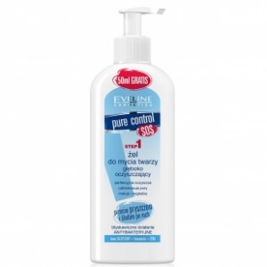 Pure Control SOS głęboko oczyszczający żel do mycia twarzy dzięki połączeniu antybakteryjnego kwasu salicylowego i wyciągu z oczaru wirginijskiego (Hamamelis) zwalcza pryszcze oraz łagodzi zaognione zmiany trądzikowe. Zawarty w formule cynk skutecznie reguluje wydzielanie sebum, co znacznie zmniejsza błyszczenie się skóry. Żel doskonale oczyszcza skórę, skutecznie eliminuje zaskórniki oraz zapobiega powstawaniu nowych. Przyjemne uczucie chłodzenia pozostawia skórę odświeżoną i ukojoną. Żel sprawia, że staje się gładka i idealnie matowa