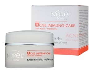 Krem przeznaczony do codziennej pielęgnacji skóry tłustej, ze zmianami trądzikowymi. Normalizuje pracę gruczołów łojowych, usuwa połysk poprzez zastosowanie specjalnych granulek absorbujących nadmiar sebum. Doskonale nawilża nie pozostawiając na skórze tłustego filmu. Wzmacnia odporność komórek na stresy, ogranicza rozwój wykwitów trądzikowych. Nadaje skórze jedwabisty, matowy wygląd. Krem zawiera: