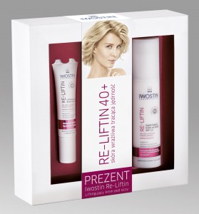 W zestawie znajdują się preparaty Iwostin Re-Liftin, przywracające elastyczność skórze wrażliwej po 40. roku życia. Ujędrniający krem na dzień SPF15 (50 ml) stymuluje syntezę kolagenu i przywraca jego optymalną strukturę, dodatkowo chroni skórę przed promieniowaniem UV.