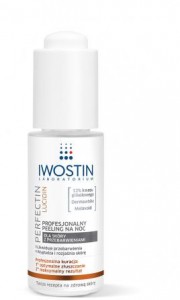 Opis producenta: Iwostin Perfectin Lucidin profesjonalny peeling na noc widocznie oczyszcza oraz wygładza cerę. Zapobiega tworzeniu się przebarwień, ujednolica koloryt. Peeling jest jednym z dermokosmetyków stworzonych specjalnie z myślą o skórze dotkniętej przebarwieniami. Zawiera kwas glikolowy pochodzenia naturalnego, który ułatwia wchłanianie innych składników. Dermawhite stanowi kompozycję takich substancji jak: kwas ferulowy, glukonowy i cytrynowy. Dzięki nim ogranicza wielkość rumienia i wykazuje właściwości depigmentacyjne oraz zmniejsza aktywność melanocytów nadmiernie produkujących barwnik skóry, co przyczynia się do powstawania przebarwień. Delikatnie złuszcza skórę, usuwając martwy naskórek. Melavoid rozjaśnienia przebarwienia dzięki zatrzymaniu produkcji i aktywności tyrozynazy. Po zastosowaniu kosmetyku skóra jest nie tylko jedwabiście gładka, ale również charakteryzuje się jednolitym kolorytem, bez przebarwień.