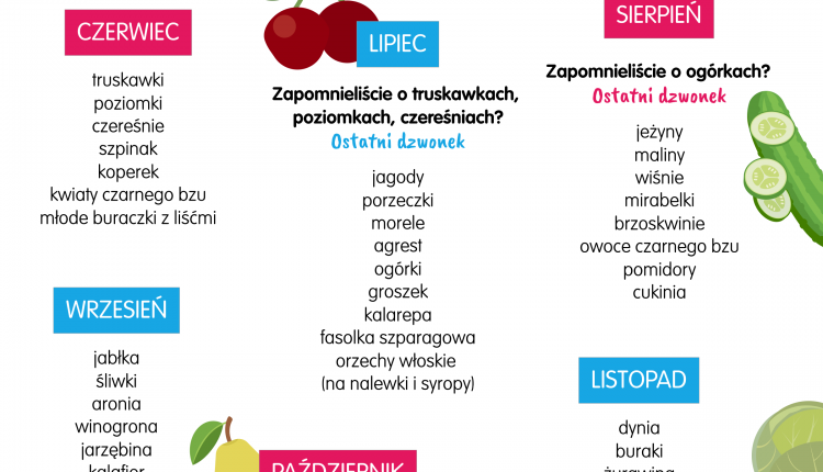 Domowe słodkie przetwory możemy przygotowywać praktycznie od pojawienia się sezonowych owoców aż do października. Na początku wydaje się, że czasu jest sporo, a możliwości bardzo dużo. Nie mniej jednak warto podejść do tego rozsądnie i zaplanować, w co chcemy wyposażyć naszą spiżarnię. Po pierwsze: zastanów się, jakie smaki i owoce lubisz najbardziej, i na które z nich jest największe zapotrzebowanie w twoim domu. Jeśli na przykład nie przepadamy za kompotami, nie warto ich robić. Można także wziąć pod uwagę aspekt finansowy i zakonserwować te owoce, które zimą są o wiele droższe przez co już nie tak łatwo dostępne. Warto także wcześniej sprawdzić, jakie owoce dojrzewają w danych miesiącach, co znacznie ułatwi nam pracę i pozwoli ją rozłożyć w czasie. Zestaw samodzielnie przygotowanych pysznych dżemów, soków i przetworów da nam szansę na chwilę zdrowej i słodkiej przyjemności w zimowe poranki oraz pomoże nam w tym ciężkim dla wielu czasie zachować różnorodną dietę.