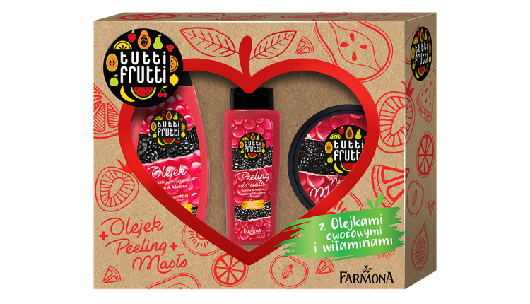 Każdy z nas lubi dostawać prezenty, ale tak naprawdę uwielbiamy je dawać! Z marką Tutti Frutti możesz podarować prawdziwą moc owoców, a do tego niesamowite doznania sensoryczne. Kosmetyki do pielęgnacji ciała z jeżynowo-malinowej serii, zamknięte w efektownym zestawie prezentowym, pozwolą wyczarować piękny uśmiech na twarzy bliskiej Ci osoby. Bo takich podarków się nie zapomina?