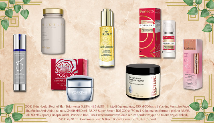 Jeśli chcemy dłużej wyglądać młodo, musimy działać wielotorowo. Wygląd naszej skóry to nie tylko wiek, ale i nasze doświadczenia, styl życia, nawyki pielęgnacyjne. I jeśli już mówimy o nawykach, to pielęgnację warto wspomagać także od wewnątrz za pomocą suplementów. By zobaczyć efekty, potrzeba regularności i czasu – zazwyczaj około 2-3 miesięcy. Kolagenowa formuła piękna REMÉ to kompozycja bioaktywnych peptydów kolagenowych VERSIOL oraz witamin i minerałów, które wspierają zdrowie skóry, włosów i paznokci. Skuteczność produktu VERISOL wykazano w licznych badaniach klinicznych. Natomiast Medilâge anti âge to formuła łącząca dwa opatentowane składniki. AstaPureArava i TetraSOD radykalnie wpływają na zmniejszenie liczby zmarszczek oraz poprawiają nawilżenie i elastyczność skóry. Obydwa suplementy bazują na składnikach o udowodnionym działaniu.