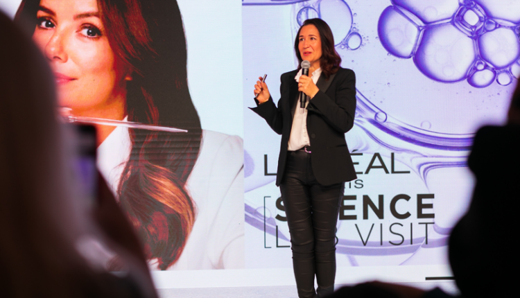 Na strefie megabrandowej przez odbywały się ciekawe panele dyskusyjne i wykłady. Część merytoryczną otworzyła Elizabeth Bouhadana (na zdjęciu), globalna dyrektor naukowa marki, opowiadając o tym, jak L’ Oréal Paris dzięki badaniom naukowym od ponad 110 lat wprowadza innowacyjne produkty wyprzedzając swoje czasy.