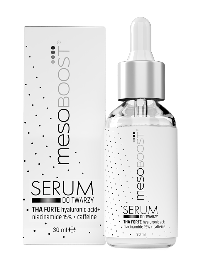 mesoBoost THA FORTE to żelowe serum, którego powstanie zostało zainspirowane zabiegami medycyny estetycznej. Jego formuła bazuje na najwyższym 3% stężeniu potrójnego kwasu hialuronowego. Potrójny kwas hialuronowy pomaga wypełnić zmarszczki i przywraca skórze gęstość. Zapewnia specjalistyczną pielęgnację ukierunkowaną na długotrwałą regenerację skóry oraz wspomagającą procesy odmłodzenia skóry. Z kolei niacynamid wykazuje właściwości antyoksydacyjne i chroni skórę przed wolnymi rodnikami. Kofeina dodaje skórze energii i pobudza do działania.