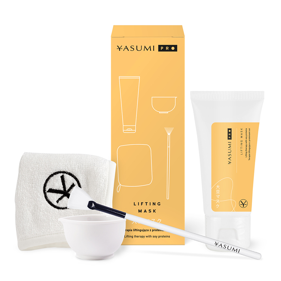 YASUMI Lifting Mask – kremowa maska do każdego rodzaju cery, szczególnie wymagającej odmłodzenia. Jej formuła ma silne działanie rewitalizujące i antyoksydacyjne. Odbudowuje barierę hydrolipidową skóry, zwiększa jędrność i elastyczność, nawilża, wygładza, spłyca zmarszczki. Vegeseryl, bogaty w białko i aminokwasy kompleks zawierający proteiny soi, nawilża, wygładza skórę, hamuje procesy starzenia. Polisacharyd – tworzy film ochronny, który zabezpiecza skórę przed utratą wody i niekorzystnym wpływem czynników zewnętrznych. Olej canola również zapobiega przeznaskórkowej utracie wody, a do tego neutralizuje wolne rodniki odpowiedzialne za starzenie się skóry. Tokoferol, silny antyoksydant, poprawia kondycję skóry, odmładza, chroni przed podrażnieniami. Alantoina przyspiesza regenerację, koi i łagodzi stany zapalne. Zmniejsza zaczerwienienie skóry wrażliwej na działanie szkodliwych czynników zewnętrznych. Aby uprzyjemnić rytuał pielęgnacyjny, w zestawie z maską znajduje się miseczka, pędzelek oraz miękka maskomyjka.