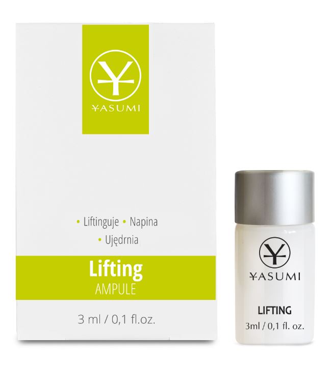 YASUMI Lifting Ampoule – ampułka przeznaczona do pielęgnacji skóry, która utraciła jędrność i elastyczność. Poprawia kondycję skóry, ujędrnia ją, napina, zwiększa sprężystość. Ampułka sprawdza się jako baza pod makijaż. Polecana także do stosowania na skórę biustu i brzucha, zwłaszcza po ciąży lub spadku masy ciała. Ekstrakt z owsa – odżywia i regeneruje. Koi podrażnienia, działa przeciwzapalnie i przeciwbakteryjnie. Zwiększa elastyczność skóry, ujędrnia, a także pobudza cyrkulację krwi. Ekstrakt z kigelii afrykańskiej – spowalnia procesy starzenia skóry. Regeneruje włókna kolagenowe, wzmacnia je i stabilizuje, w efekcie ujędrnia skórę.