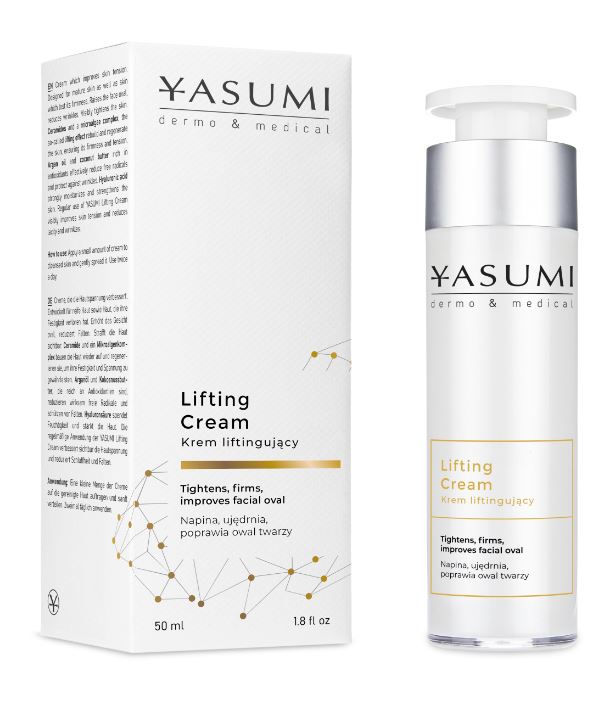Yasumi Lifting Cream – krem do cery dojrzałej, suchej, pozbawionej jędrności. Poprawia napięcie skóry, podnosi owal twarzy, redukuje zmarszczki. Składniki aktywne ukierunkowane są na nawilżenie, odbudowę i regenerację skóry, ujędrnienie i hamowanie procesów jej starzenia. Ceramidy – cząsteczki tłuszczowe, które wchodzą w skład bariery hydrolipidowej naskórka. Stanowią spoiwo komórek skóry, a ich poziom wpływa na jej kondycję, odporność na czynniki zewnętrzne, stopień odżywienia, nawilżenia, a tym samym elastyczność. Ekstrakt z alg czerwonych (Porphyridium cruentum extract) – nawilża, koi i wzmacnia odporność skóry na szkodliwe czynniki zewnętrzne. Redukuje objawy stanów zapalnych i spowalnia procesy zstarzenia się skóry. Chroni ją przed wolnymi rodnikami. Masło kakaowe – hamuje procesy zapalne, działa antyoksydacyjnie, sprzyja regeneracji skóry. Zwiększa jej elastyczność i odporność na szkodliwe czynniki zewnętrzne.