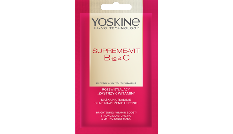 W 2024 roku YOSKINE przedstawia nowy produkt w bestsellerowej linii SUPREME-VIT B12&C. Maska na tkaninie rozświetlający zastrzyk witamin dla skóry, która potrzebuje intensywnego i natychmiastowego nawilżenia oraz liftingu!