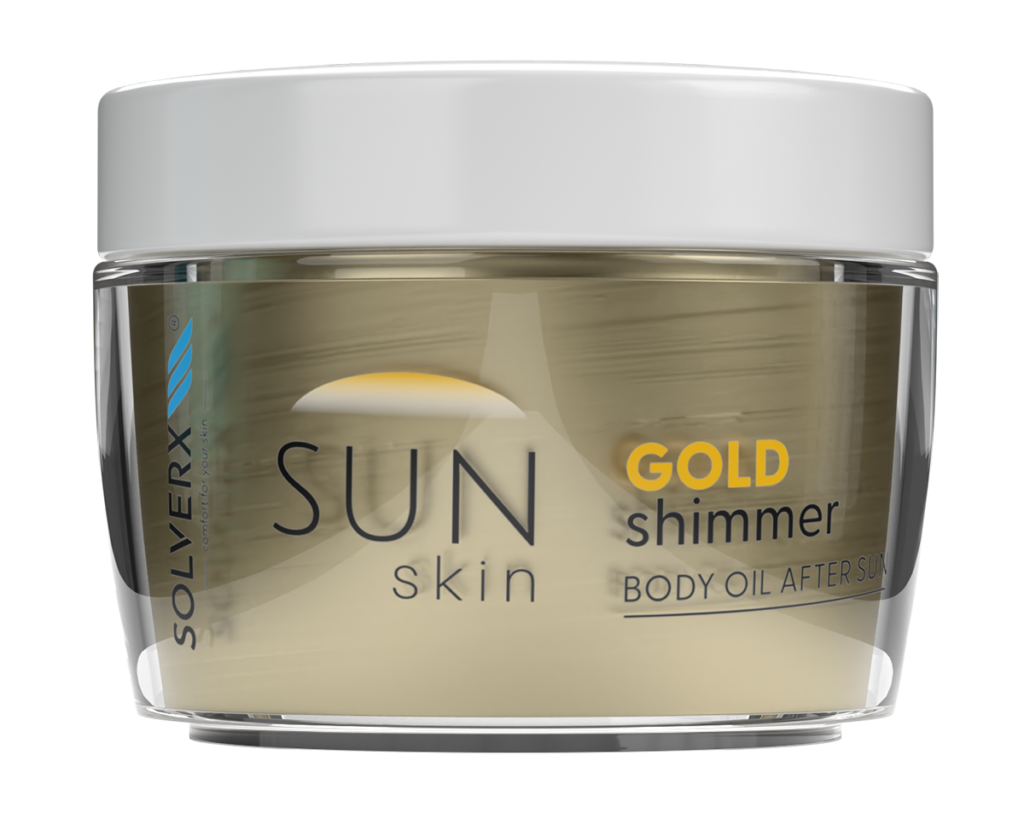 Jednym z naturalnych składników, na jakie świetnie reaguje ciało po ekspozycji na słońce jest olej migdałowy, który w połączeniu z bezcennym antyoksydantem, witaminą E, wspaniale odżywia skórę i wzmacnia jej barierę lipidową. Tandem komponentów zawartych w olejku pielęgnacyjnym SOLVERX SUN SKIN Gold Shimmer przyśpiesza także procesy regeneracji, łagodząc podrażnienia oraz nawilża i zmiękcza naskórek, pozostawiając skórę miękką, gładką i pełną blasku, dzięki zawartym w kosmetyku drobinkom złotego pyłu. Olejek doskonale podkreśla naturalną opaleniznę skóry, rozświetlając ją słoneczną poświatą – mówi Agnieszka Kowalska.