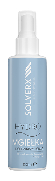 Składniki linii SOLVERX HYDRO zapewniają wielokierunkowe działanie nawilżające: aktywnie wiąże wodę w naskórku i hamuje jej nadmierne odparowanie. Potrójny kwas hialuronowy sprawia, że skóra jest bardziej jędrna, sprężysta, napięta i elastyczna. Z kolei niacynamid wykazuje właściwości antyoksydacyjne (chroni skórę przed wolnymi rodnikami) oraz zwiększa jej elastyczność. Dodatkowo decyduje o stanie nawilżenia naskórka. Delikatna mgiełka wspaniale odświeża i nawilża skórę. Ponadto pielęgnuje ją i chroni przed czynnikami zewnętrznymi. Idealna do stosowania w trakcie wysokich temperatur oraz w pomieszczeniach z klimatyzacją. Do stosowania bezpośrednio pod makijaż.