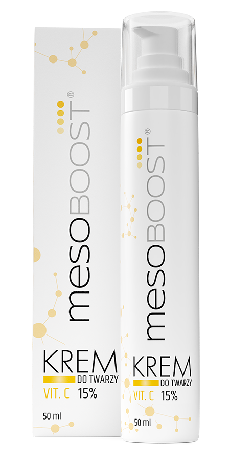 mesoBoost wit. C 15% krem do twarzy to silnie odżywczy i rewitalizujący preparat z witaminą C do codziennej pielęgnacji skóry szarej, matowej, cery palaczy, o nierównym kolorycie oraz zniszczonej słońcem lub upływem lat. Skoncentrowana oraz ustabilizowana witamina C stymuluje procesy odnowy komórkowej i uczestniczy w syntezie elastyny oraz kolagenu. Tym samym intensywnie wpływa na ujędrnienie skóry i wygładzenie zmarszczek. Dodatkowo hamuje i regeneruje uszkodzenia cery powodowane promieniowaniem UV. Specjalnie opracowany kompleks regenerujący, bazujący na oleju lnianym i oleju z czarnuszki pobudza skórę do odnowy i opóźnia procesy starzenia komórek skóry.