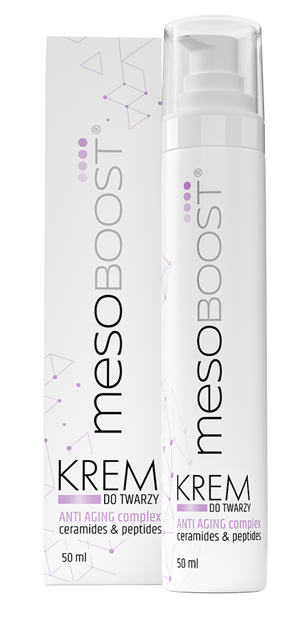 Krem do twarzy mesoBoost ANTI AGING complex ceramides & peptides to kombinacja składników aktywnych o działaniu anti-age. Ceramidy wzmacniają barierę ochronną skóry, chronią przed odwodnieniem i przesuszeniem, a także wykazują działanie przeciwzmarszczkowe i ujędrniające. Peptydy z kolei promują aktywację procesu regeneracji i korzystnie wpływają na odmłodzenie skóry.
