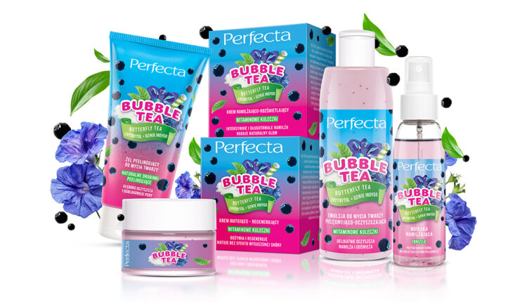 Niebieska herbata, doprawiona dzikim indygo i dosłodzona szczyptą erytrytolu brzmi jak napój, który dobrze gasi pragnienie, ale uwaga: ten koktajl jest tylko do użytku zewnętrznego. Może być świetnym elementem zbilansowanej diety dla skóry, bo regularne aplikowanie go sprawia, że dzień po dniu staje się piękniejsza. Nowa linia oczyszczająca PERFECTA BUBBLE TEA BUTTERFLY TEA składa się z sześciu produktów do codziennej pielęgnacji cery. Emulsja do mycia twarzy delikatnie oczyszcza, dodatkowo wspierając płaszcz lipidowy skóry. Płyn micelarny 3w1 świetnie radzi sobie nawet z wodoodpornym makijażem. Żel peelingujący głęboko oczyszcza skórę odblokowując pory. Mgiełka nawilżająca tonizuje i przygotowuje do aplikacji kolejnych kosmetyków. Jako zwieńczenie rytuału pielęgnacyjnego marka stworzyła dwa kremy do twarzy: matująco-regenerujący oraz nawilżająco-rozświetlający. Skuteczne działanie linia zawdzięcza innowacyjnym składnikom pielęgnacyjnym. Wyciąg z niebieskiej herbaty Butterfly Tea nawilża i przynosi ukojenie. Erytrytol wiąże wodę w naskórku i wspiera naturalny mikrobiom skóry, a dzikie indygo ma właściwości łagodzące i chroniące przed szkodliwym działaniem czynników zewnętrznych.