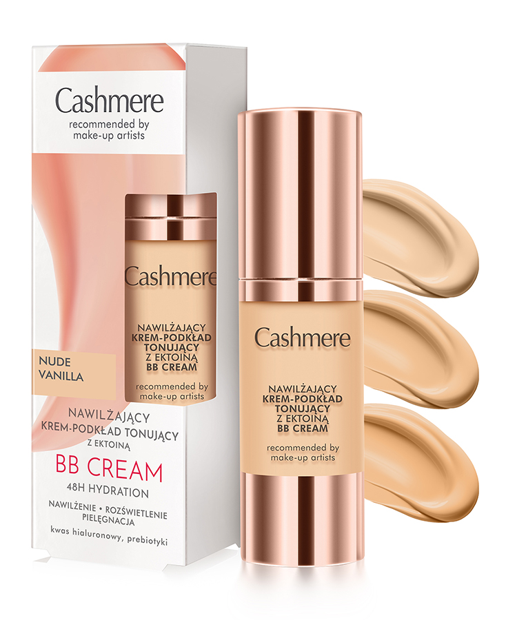 Kremy BB to kategoria kosmetyków z pogranicza makijażu i pielęgnacji. Doskonale radzą sobie zarówno z ujednolicaniem kolorytu skóry, jak i wydobywaniem jej naturalnego piękna. A to dlatego, że ich formuły zostały wzbogacone o składniki aktywne. Kwas hialuronowy, ektoina czy prebiotyki pojawiają się w składach dobrych kremów do twarzy. Marka CASHMERE postanowiła dodać je również do kremu BB. Kwas hialuronowy w duecie z ektoiną doskonale wiąże cząsteczki wody i zatrzymuje je w skórze. Dzięki temu cera jest nawilżona przez wiele godzin (nawet do 48h). Z kolei prebiotyki sprzyjają mikrobiomowi, od którego w dużej mierze zależy zdrowy wygląd skóry. Krem BB od CASHMERE dostępny jest w trzech odcieniach: Nude Vanilla, Nude Beige, Nude Sand. Wszystkie idealnie stapiają się ze skórą, zapewniając jej naturalny wygląd.