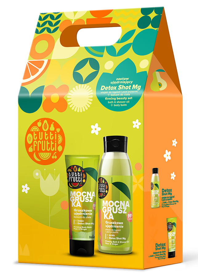 Rozkwitająca wiosna i pełnia słonecznego lata. Tak można opisać kosmetyki z linii Mocna Gruszka od Tutti Frutti, które nie tylko pielęgnują skórę za sprawą mocy naturalnych składników, ale również rozpieszczają zmysły, dodają energii i wprawiają w dobry nastrój na cały dzień. To coś więcej niż zwykła pielęgnacja. W zestawie zamknięto olejek do kąpieli i pod prysznic oraz balsam do ciała, z którym czeka Cię przyjemne, gruszkowo-imbirowe uczucie miękkości i elastyczności, błogie doświadczenie odprężenia oraz rozkoszne ujędrnienie dzięki unikalnej formule Detox Shot Mg. 35,99 zł/ szt.
