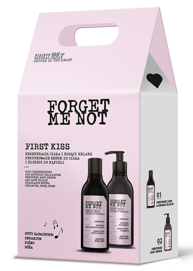 W zestawie zawarto perfumowany eliksir do kąpieli i pod prysznic oraz perfumowane serum do ciała z linii First Kiss. Króluje tu kompozycja nut geranium, róży i piżma, odzwierciedlających prawdziwą słodycz, emocje i piękne wspomnienia, które teraz obdarowywana osoba może mieć na wyciągnięcie ręki. Moc składników aktywnych m.in. nawilżających i wygładzających skórę ekstraktów z piwonii i chabra czy relaksującego i wyciszającego olejku geraniowego, zapewnia holistyczną pielęgnację, której nikt się nie oprze. 47,99 zł/ szt.
