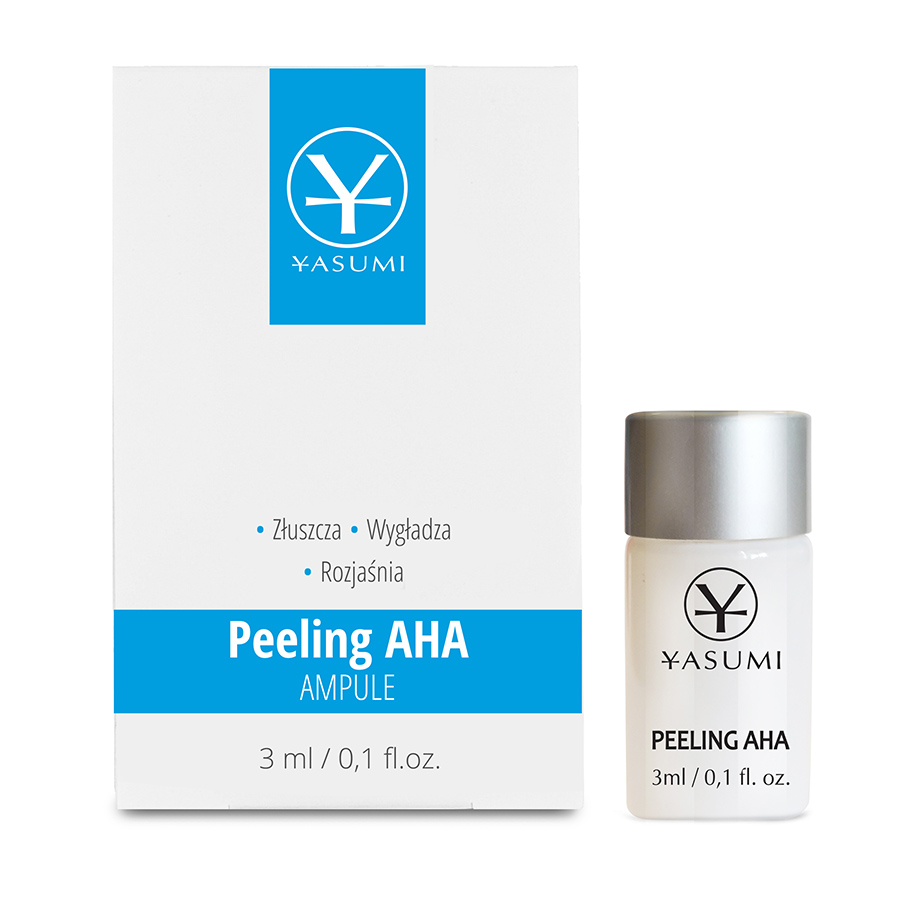 YASUMI Peeling AHA Ampoule – ampułka z kwasami AHA polecana do skóry problematycznej, skłonnej do wyprysków. Rozpuszcza martwe komórki naskórka, a tym samym wygładza i odświeża koloryt skóry, zmiękcza ją i odmładza. Działa antyoksydacyjnie. Reguluje pracę gruczołów łojowych, poprawia nawilżenie skóry, minimalizuje przebarwienia. Glikol kaprylowy – zapobiega ucieczce wody z naskórka, nawilża. Cena 19 zł/3 ml