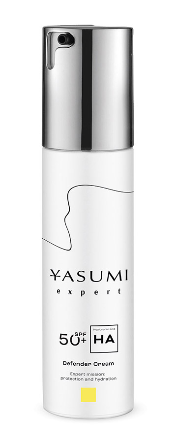 By zagwarantować skórze kompleksową pielęgnację, marka Yasumi opracowała Defender Cream SPF 50+ HA. To innowacyjny krem, który łączy w sobie wysoką ochronę przeciwsłoneczną z intensywnym nawilżeniem. Polecany jest do każdego typu skóry, zwłaszcza skłonnej do przebarwień. Ma lekką konsystencję, która nie obciąża skóry i nie zatyka porów.