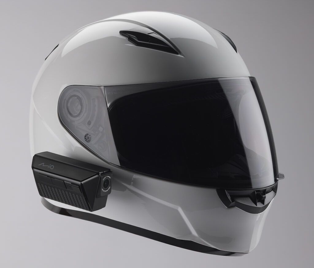 Kamera Mio MiVue MP30 to z kolei rejestrator jazdy, który montuje się na kasku. Dzięki temu pozwala na dokładny zapis trasy widzianej oczami motocyklisty. Dzięki dwóm obiektywom 2.5K – przedniemu i tylnemu – rejestruje pełny obraz sytuacji na drodze. Technologia HDR poprawia czytelność tablic rejestracyjnych, a nagrywanie w 60 kl./s zapewnia płynność obrazu, nawet w dynamicznych sytuacjach.