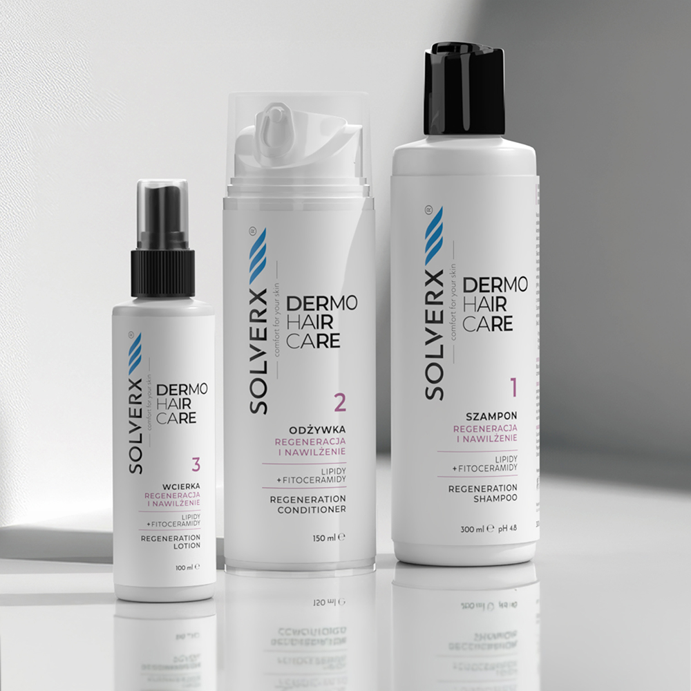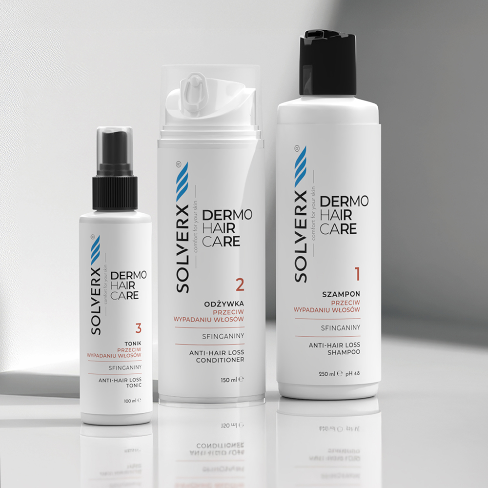 Zasada sfingoidowa naturalnie występuje w skórze głowy. Nowym trendem jest wykorzystanie jej potwierdzonych badaniami dobroczynnych właściwości w kuracjach dla domowej profesjonalnej pielęgnacji włosów. Sfinganiny zapobiegają wypadaniu włosów poprzez przywrócenie równowagi cyklu wzrostu włosa. W linii SOLVERX Dermo Hair przeciw wypadaniu włosów działanie sfinganiny zostało wzmocnione kofeiną, niacynamidem i ekstraktem z kory chinowej, które poprawiają ukrwienie skóry głowy, odżywienie oraz wzmocnienie cebulek włosowych. W formule zastosowano także pantotenat wapnia i ekstrakt z krwawnika, które dodatkowo wspomagają wzrost włosów – powiedziała Agnieszka Kowalska, Medical Advisor, ekspert marki SOLVERX.