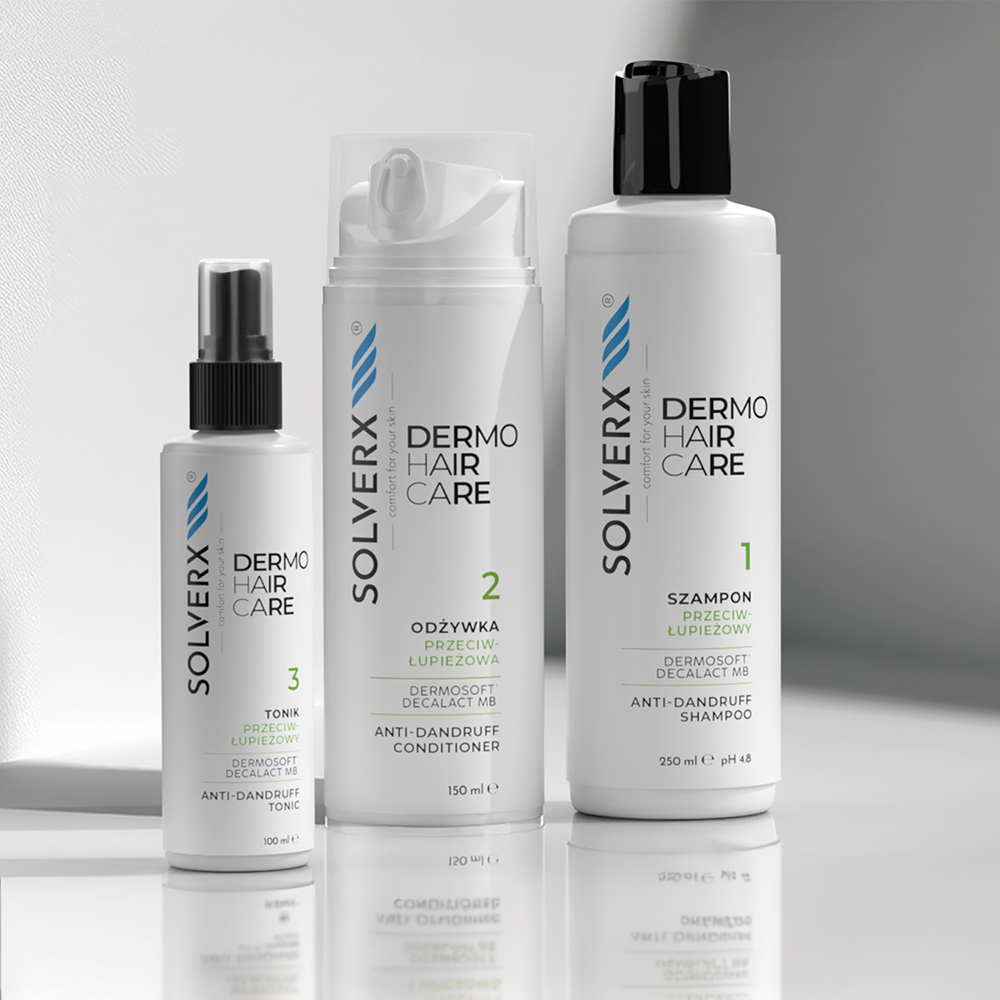 Kluczowe w przypadku zwalczania łupieżu jest utrzymanie odpowiedniego, lekko kwaśnego pH skóry. Warto sięgać również po naturalne alternatywy dla chemicznych substancji przeciwłupieżowych. Takim składnikiem jest Dermosoft decalact MB, który skutecznie zwalcza drożdżaki powodujące łupież i jest przyjazny wrażliwej skórze. Drugi z cennych składników – również zastosowany w przeciwłupieżowej linii SOLVERX Dermo Hair to niacynamid, inaczej nazywany witaminą PP, efektywnie łagodzący podrażnienia i normalizujący wydzielanie sebum. Co więcej, komponentem oczyszczającym pierwszego wyboru w przypadku skóry ze skłonnością do łupieżu są glikolipidy, które chronią warstwę hydrolipidową – powiedziała Agnieszka Kowalska.