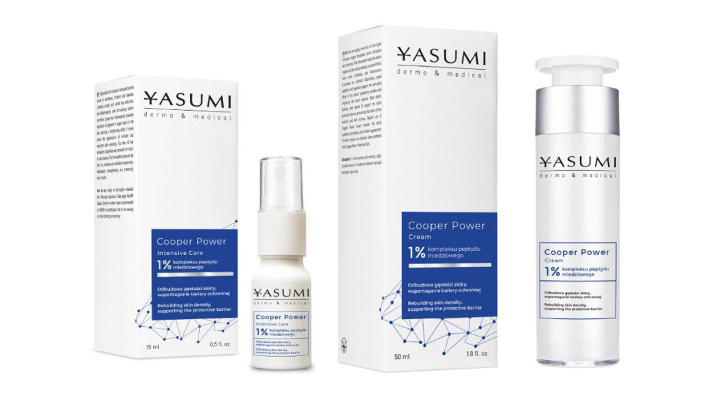 Ocenia się, że tripeptyd miedziowy jest skuteczny nawet w tak niskich stężeniach jak 0,01-0,1%. Aby zapewnić precyzyjną i skuteczną kurację przeciwstarzeniową, marka Yasumi opracowała linię kosmetyków Cooper Power z tripeptydem miedziowym o stężeniu 1%. Jest ono optymalne, byś szybko osiągnęła widoczne efekty.