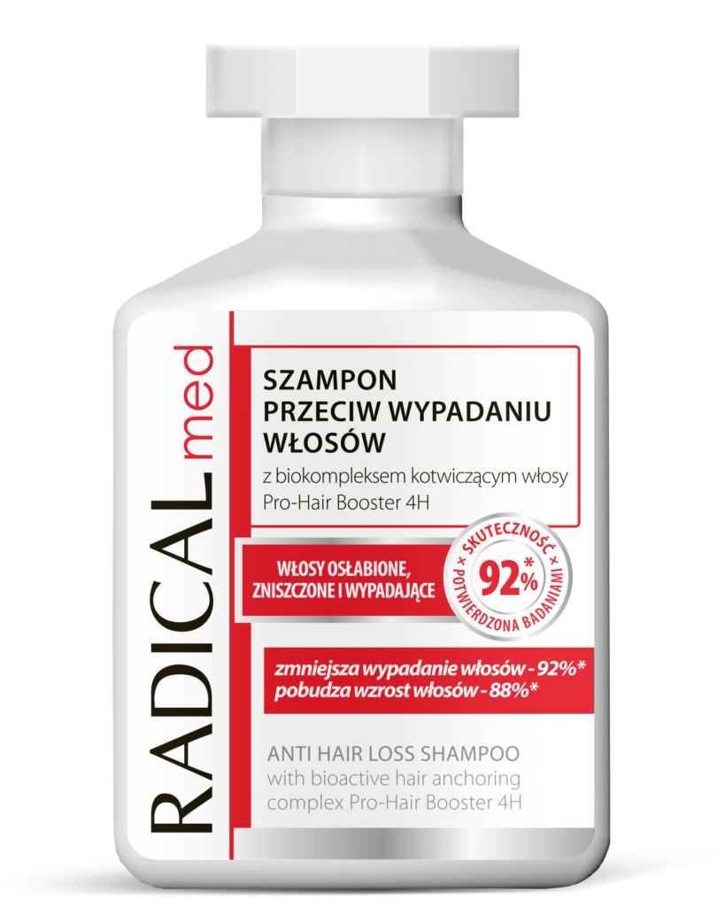 Istnieje wiele przyczyn wypadania włosów o tej porze roku. Jednym z nich jest? lato. Szkodliwe działanie wysokich temperatur i promieniowania UV w okresie wakacyjnym przyczynia się do zmian w  fazach ich cyklu wzrostu. Więcej z nich przechodzi w fazę telogenu, czyli spoczynku, przez co po urlopie zamiast dostrzegać nowe ?baby hair?, widzimy długie kosmyki na szczotce lub w odpływie. Ponadto organizm musi się zaadaptować do zmian środowiskowych. W wyniku mniejszej ekspozycji na słońce i uboższej w owoce i warzywa diety, mogą pojawić się niedobory witamin i minerałów. Do tego brzydka pogoda i krótsze dni często negatywnie wpływają na nastrój, potęgując stres. A ten, jak wiadomo, ma ogromny wpływ na kondycję całego organizmu, w tym na stan włosów. Jak więc sobie radzić z jesiennym wypadaniem? Warto dbać o zbilansowany jadłospis oraz zminimalizować działania, które mogą nasilać problemy. To nie czas na m.in. ciasne fryzury, zaniedbywanie higieny skóry głowy czy suszenie gorącym powietrzem. Podstawą jest właściwa pielęgnacja z użyciem odpowiednio dobranych kosmetyków ? takich jak RADICAL med.  W tej linii specjalistycznych preparatów znajdziemy m.in. Szampon przeciw wypadaniu włosów, Odżywkę przeciw wypadaniu włosów w sprayu oraz Kurację pobudzającą porost nowych włosów. Trzy kroki do gęstych, mocnych i  lśniących włosów z Radical med? Dokładnie tak!