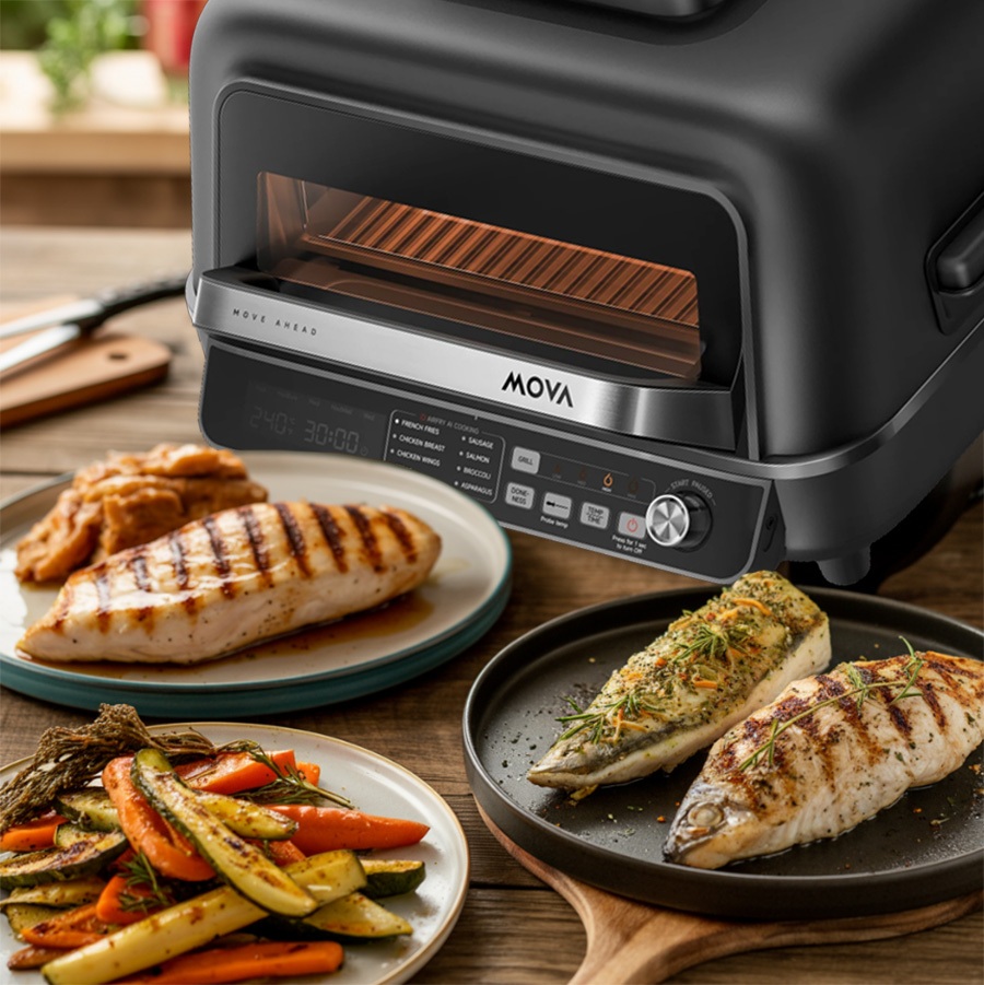 MOVA VersaMaster IG20 Pro to urządzenie stworzone z myślą o osobach, które oczekują od sprzętu kuchennego nie tylko wielofunkcyjności, ale również wysokiej precyzji i wygody obsługi. To połączenie grilla kontaktowego, płyty do pieczenia, frytkownicy beztłuszczowej oraz mini-piekarnika, które realnie może zastąpić kilka urządzeń stojących dotąd na kuchennym blacie.