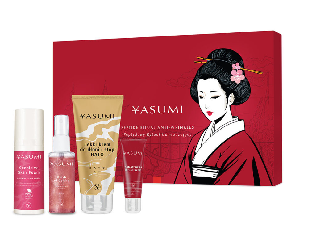Yasumi Peptide Ritual Anti-Wrinkles Box – zestaw mini preparatów, które łączą japońską filozofię z nowoczesnymi osiągnięciami. Formuły oparte na kwasie glikolowym, peptydach i odżywczych ekstraktach są idealną propozycją dla cery dojrzałej.