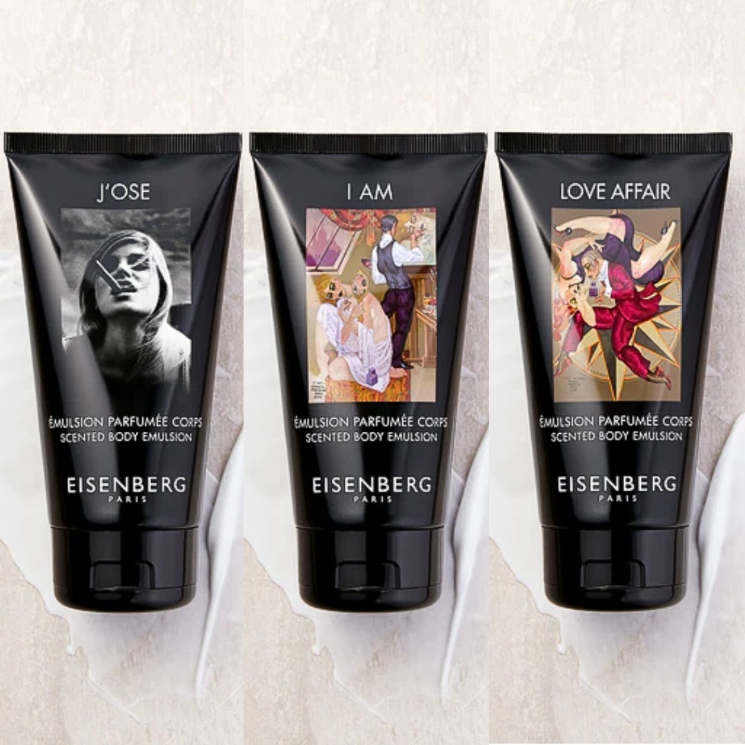 EISENBERG zaprasza w zmysłową podróż, oferując trzy niezwykłe odsłony: JOSE, I AM oraz LOVE AFFAIR pochodzące z kultowej kolekcji L’Art du Parfum. To delikatne emulsje do ciała o lekkiej, jedwabistej konsystencji, która intensywnie nawilża, koi i otula skórę subtelnym, zmysłowym zapachem. Szybko się wchłania, nie pozostawiając tłustego filmu, a regularnie stosowana potęguje doznania towarzyszące wodzie perfumowanej z tej samej linii. Idealna dla każdego typu skóry, o każdej porze roku.