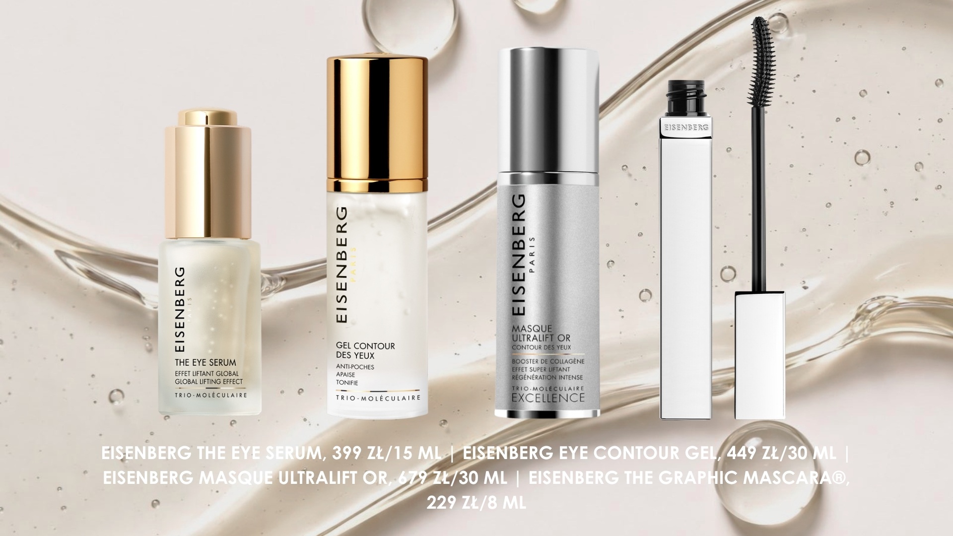 i subtelny blask. Odpowiednio dobrane formuły mogą wygładzić, rozświetlić i optycznie otworzyć oko, podkreślając jego wyrazistość w niezwykle elegancki sposób. Oto wyjątkowe propozycje od EISENBERG, które subtelnie pielęgnują i podkreślają spojrzenie, nadając mu wyjątkową głębię i elegancki charakter.