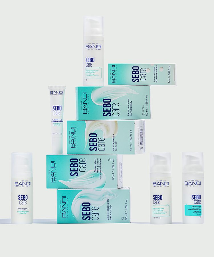 Preparaty Sebo Care dostępne są w sieci drogerii HEBE, salonach kosmetycznych oraz sklepie www.bandi.pl