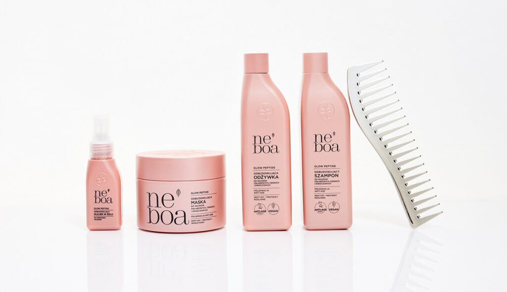 Nowa seria GLOW PEPTIDE od Neboa przenosi zaawansowaną technologię anti-age wprost do codziennej rutyny haircare. Kluczem do działania linii jest nowoczesny kompleks pięciu bioaktywnych peptydów, który działa jak inteligentny system naprawczy dla włosów i skóry głowy. Każdy z peptydów pełni inną funkcję – razem tworzą kompletną tarczę ochronną: neutralizują wolne rodniki, pobudzają mieszki włosowe do regeneracji i odbudowują strukturę włókna od wewnątrz. Działają precyzyjnie tam, gdzie włosy potrzebują wsparcia najbardziej – spowalniając niewidoczne procesy, zanim ich skutki staną się widoczne.